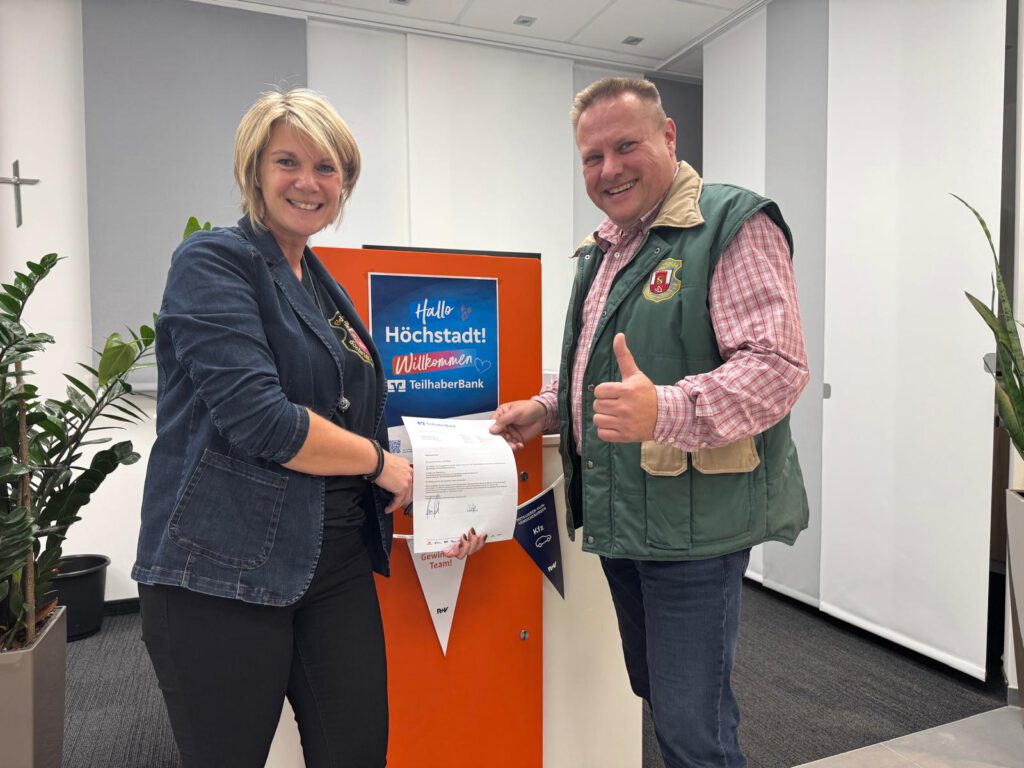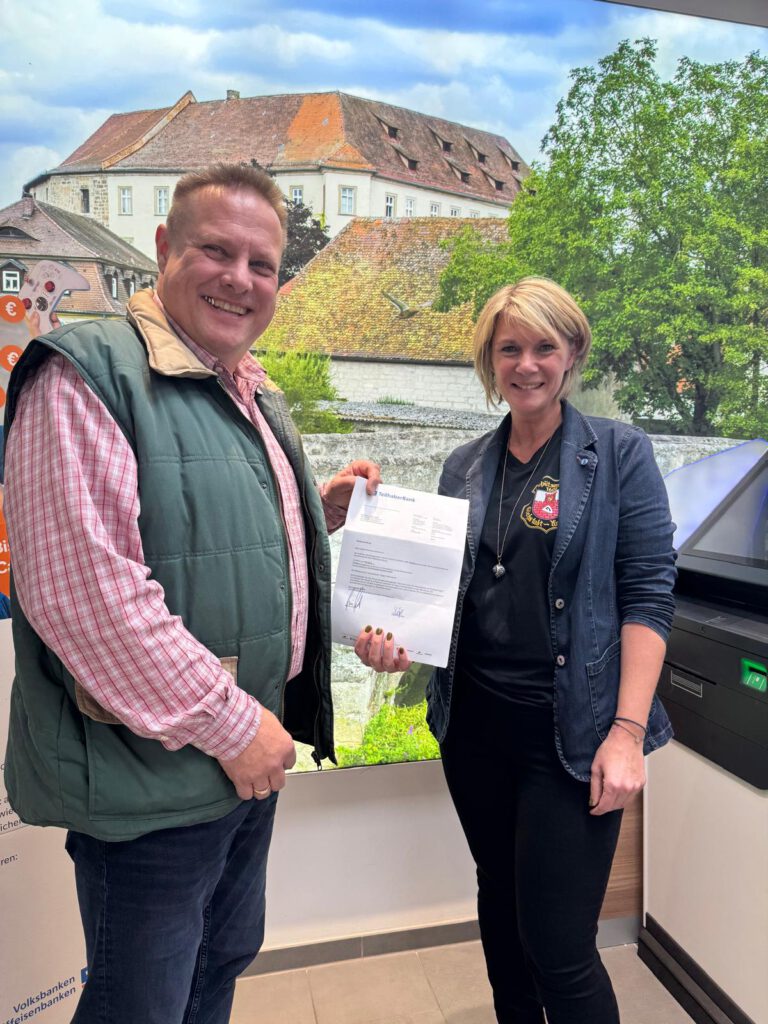 Unsere Schatzmeisterin Tanja Hilpert und 1. Vorstand Holger Weirowski nahmen am 21. Oktober 2025 in der Filiale Höchstadt, die Spende entgegen.